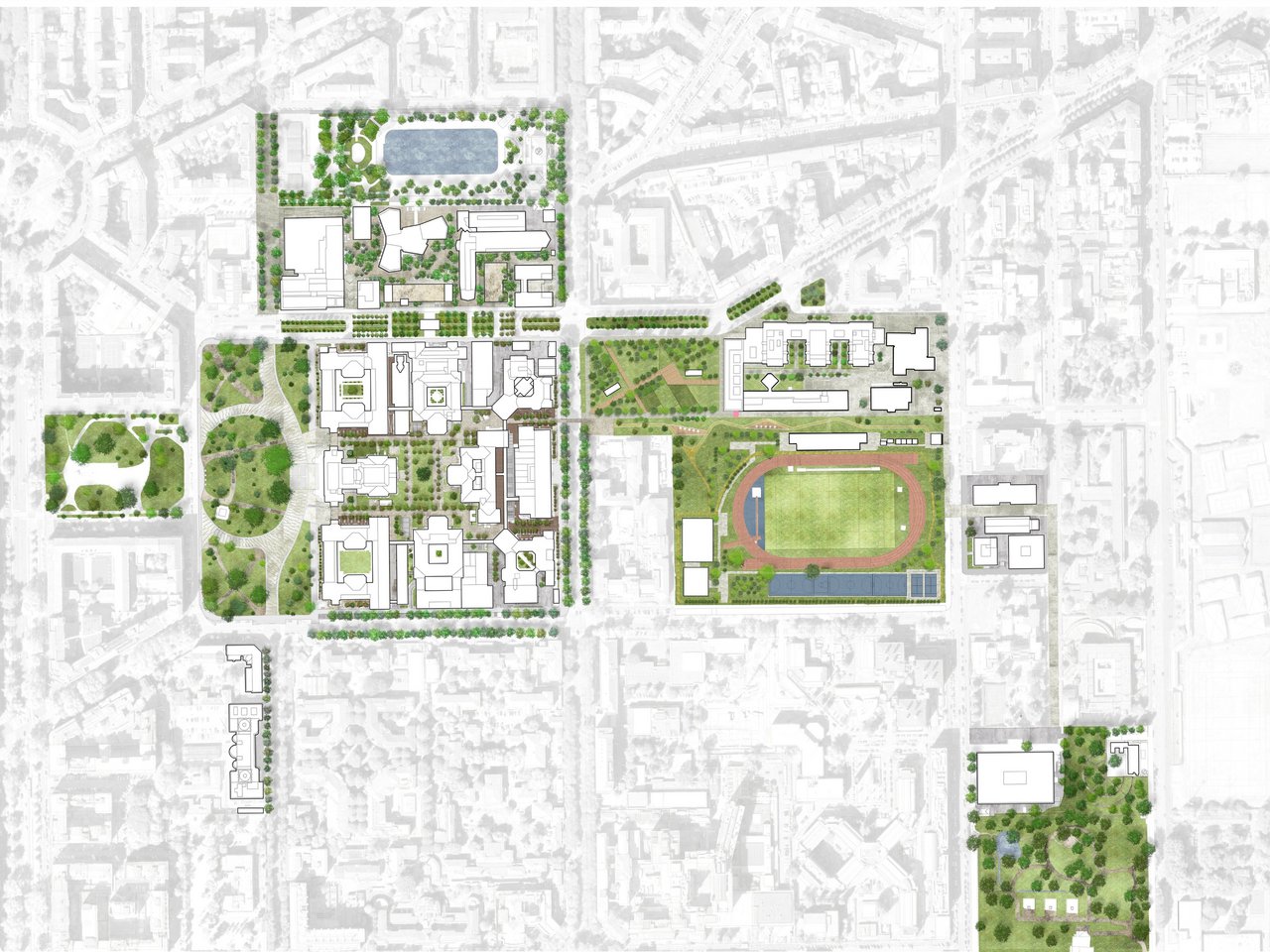 Leonardo Master plan - The project aims to address the area that has been home to the Politecnico di Milano in Città Studi since 1927 by renovating its structure, function and composition. The master plan contains an overall design that seeks to organise major roads, open spaces, green areas and buildings, giving the campus a unified design that had been disrupted by a variety of specific events over time. Continuous appropriation of the ground level and public space serves as the architectural backdrop for the evolution of the project.
