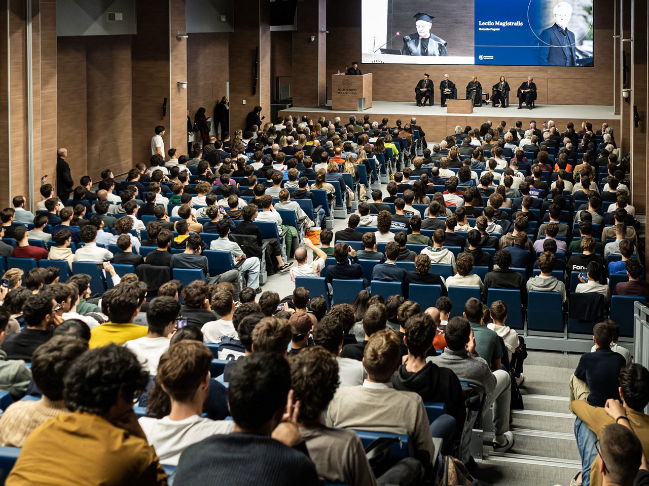 After greetings from the Rector Donatella Sciuto and a tribute by Giorgio Colombo, Professor of Engineering Drawing and Methods at the Department of Mechanical Engineering, Horacio Pagani gave a keynote address.