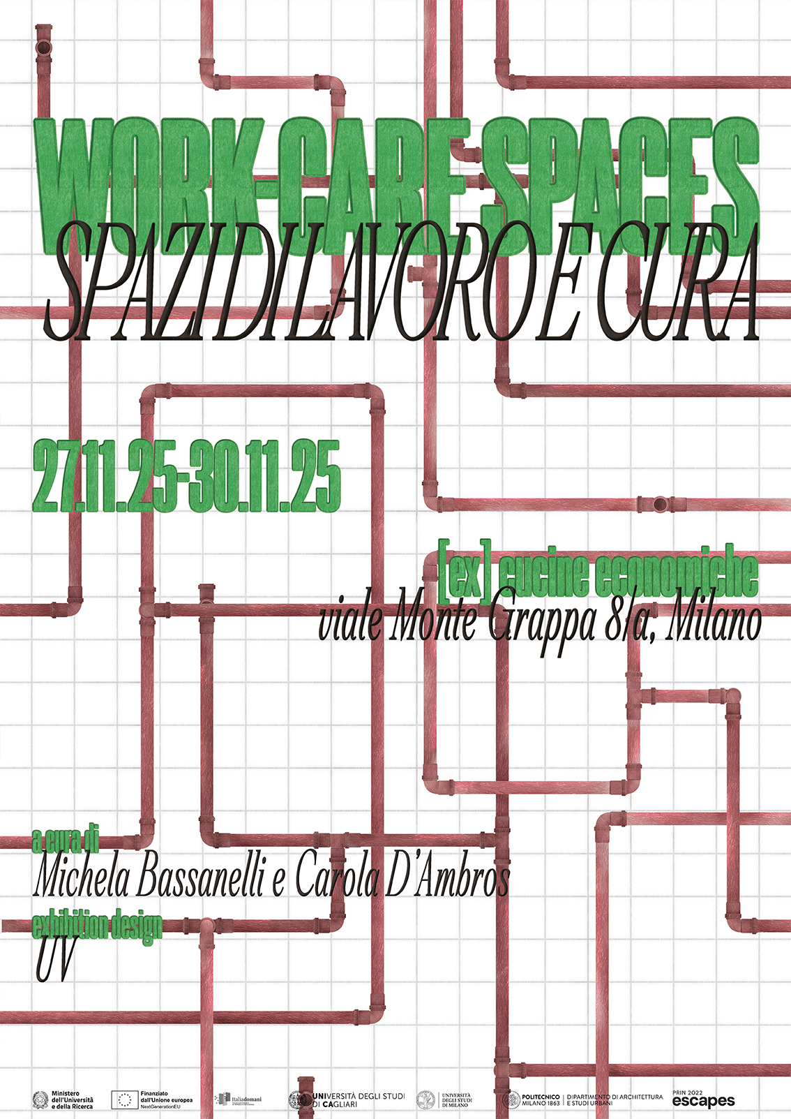 La mostra Work-Care Spaces | Spazi di lavoro e cura raccoglie gli esiti della ricerca condotta dal gruppo di lavoro del Dipartimento di Architettura e Studi Urbani del Politecnico di Milano del progetto PRIN2022 ESCAPES-Soluzioni spaziali sperimentali per la gestione sostenibile di lavoro a distanza e cura familiare, finanziato dall’Unione Europea-Next Generation EU, nell’ambito del Piano Nazionale di Ripresa e Resilienza.