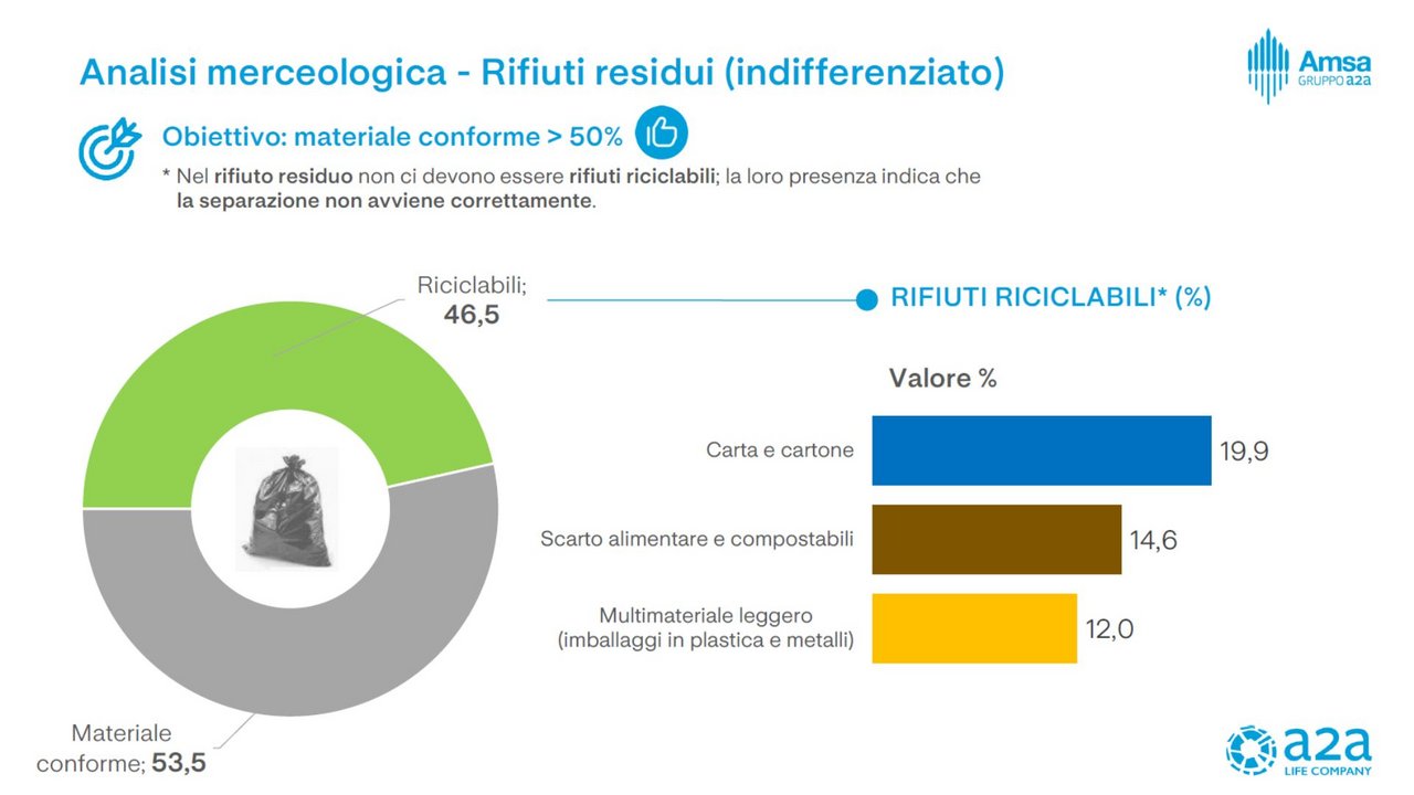 L’esito di queste ultime analisi rileva che c’è ancora margine di miglioramento e ognuno di noi può contribuire facendo più attenzione alla separazione dei rifiuti. Anche il video, parte integrante di questo servizio, evidenzia come nei sacchetti del residuo secco (indifferenziata) raccolto durante le riprese siano ancora presenti diversi rifiuti riciclabili. Pertanto, occorre una maggiore attenzione e impegno nella differenziazione dei rifiuti da parte di tutti noi.